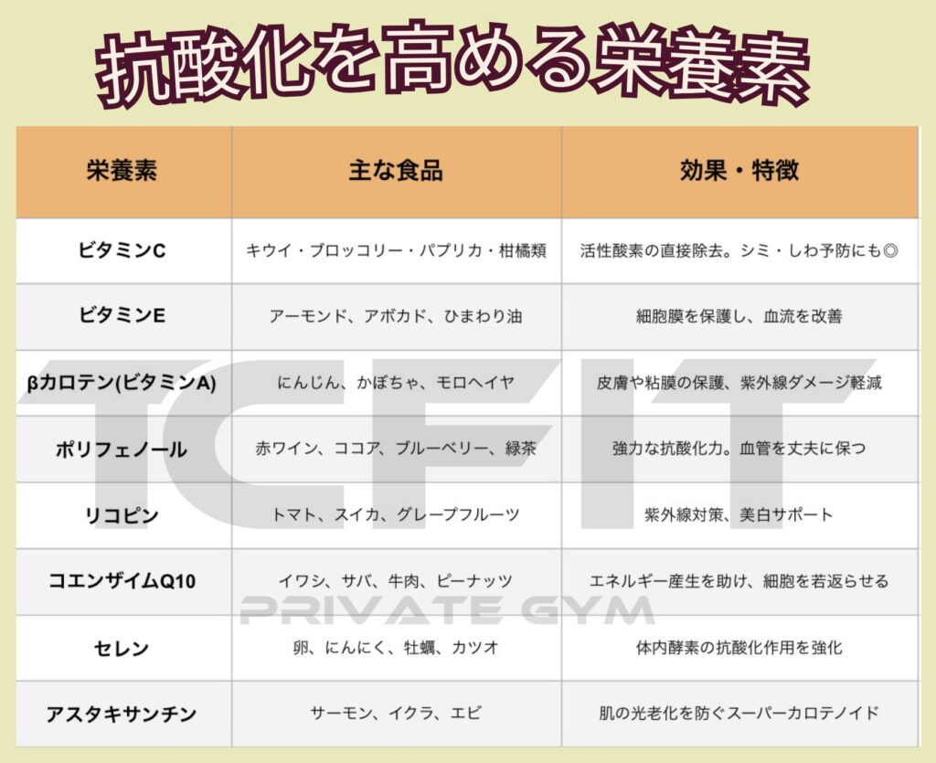 抗酸化のための代表的な栄養素を画像作成して後半に紹介しているので、せひ保存して参考にしてください。